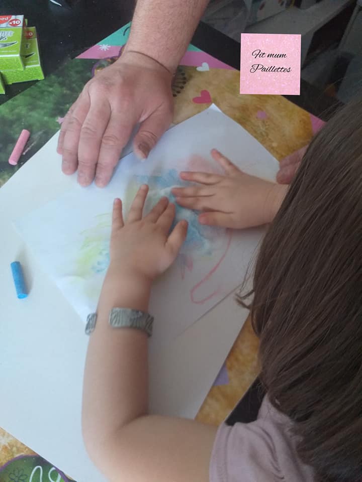 Hello mes paillettes , nous avons réalisé en famille vendredi vu que Papa Hulk était de repos, une activité toute simple et que les enfants ont adoré, du sel coloré.